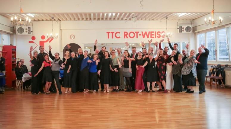 „14 Paare aus sieben verschiedenen Vereinen kamen zum Breitensportwettbewerb (BSW), zu dem der TTC Rot-Weiß am 24. November in sein Clubheim in Landwasser eingeladen hatte. Beim Mannschafts- BSW treten alle teilnehmenden Paare in Teams aus drei bis fünf Paaren gegeneinander an. Dabei kann jedes Paar fünf Tänze frei auswählen. Die Wertungen der besten drei Paare jedes Teams werden addiert und daraus die Teamwertung errechnet. Die sechs Spitzenpaare des Turnieres kämpfen im Anschluss noch in einer Endrunde gegeneinander um den Sieg in der Einzelwertung. Teilnehmen kann jeder, der nicht oder maximal in der D-Klasse im Turniersport unterwegs ist, ausgeschlossen sind aber aktive und ehemalige Turniertänzer, die bereits in der C-Klasse oder höher getanzt haben.“ (…) „Nach einer längeren Ausrechnungspause standen zunächst die Mannschaftswertungen fest. Der dritte Platz ging an die Gruppe mit den Öhringer Paaren, der zweite Platz an die Gruppe mit den Ravensburger Paaren, und der Pokal für die beste Mannschaft ging an den TTC Freiburg. Im Finale standen sechs Paare aus verschiedenen Vereinen. Der erste Platz in der „Bestenrunde“ und damit ein weiterer Pokal ging an das Equality-Paar Lea Zausch und Felicitas Leister vom TTC Rot-Weiß Freiburg.“ (Quelle: https://www.ttc-rot-weiss.de/volles-haus-und-heimsieg-beim-bsw-im-ttc )